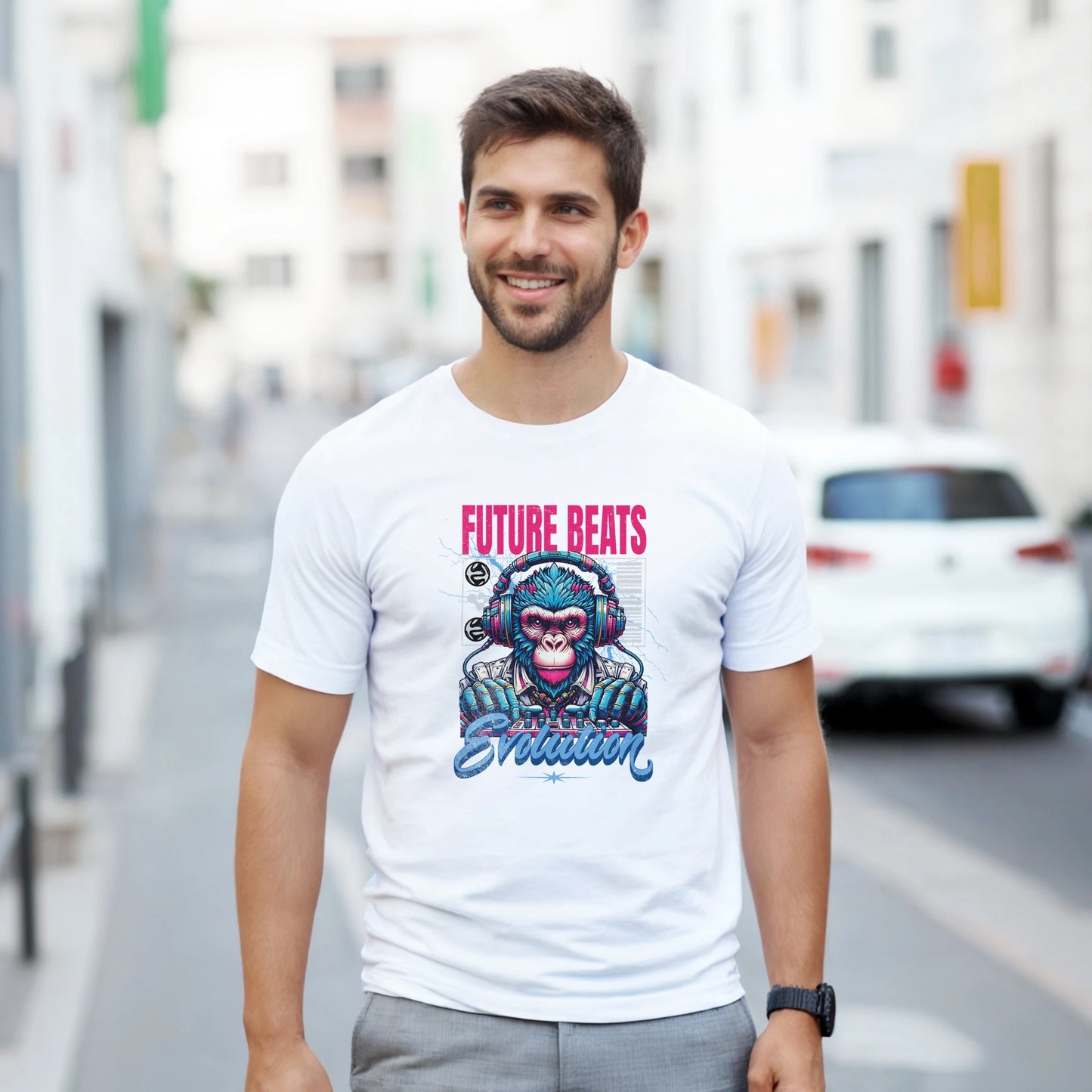 Men's Monkey DJ Graphic T-Shirt - Soft Cotton Blend Tee in White, Beige, Pink, Blue, Grey, Black | Sizes S-5XL